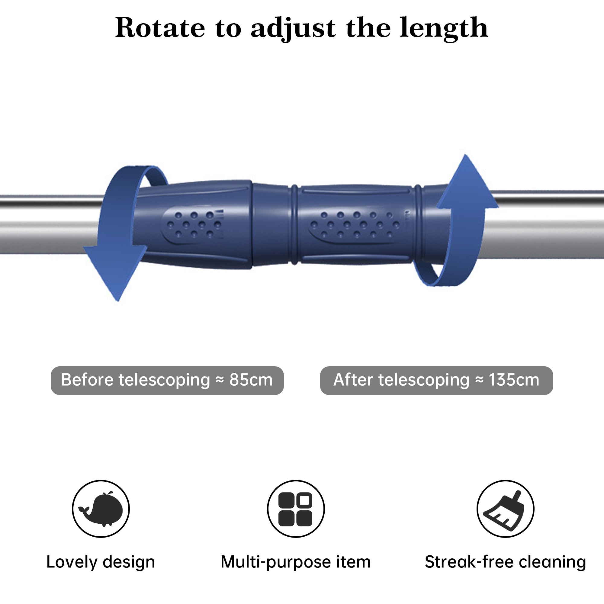 This innovative broom features a wide 52cm head with a flexible silicone scraper strip, designed for fast and efficient cleaning in both wet and dry conditions. Its ergonomic design makes it easy to use in multiple home environments.