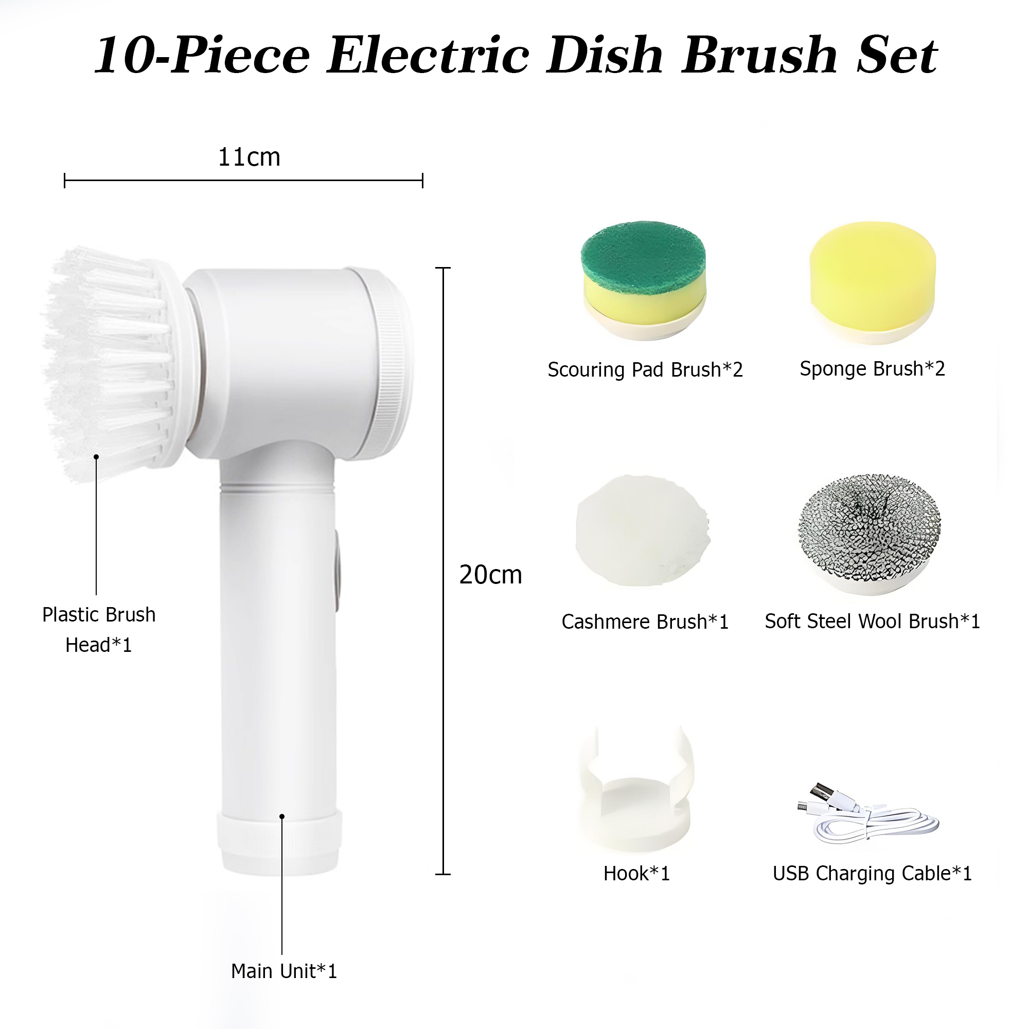 Set Includes: 10 pieces with various brush heads