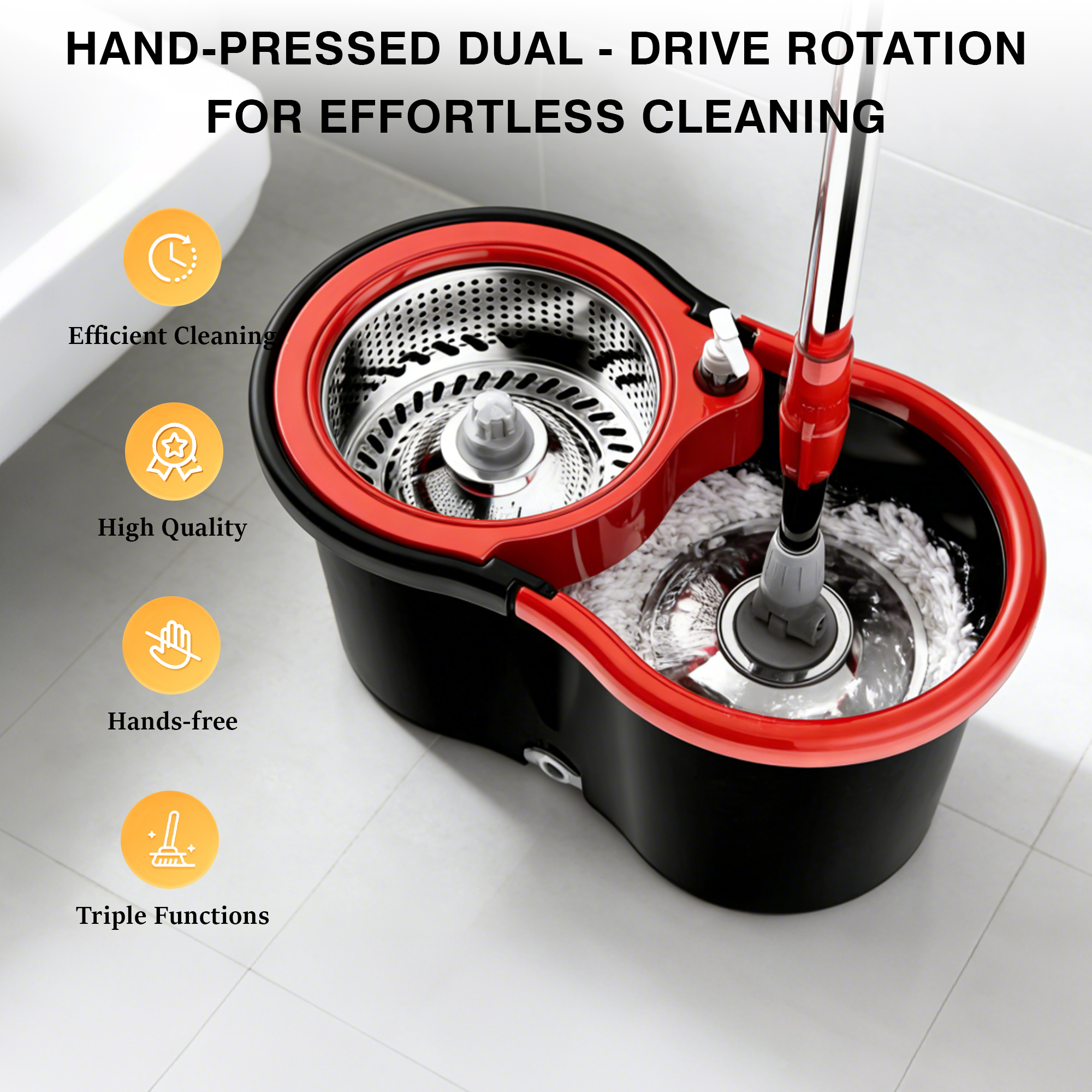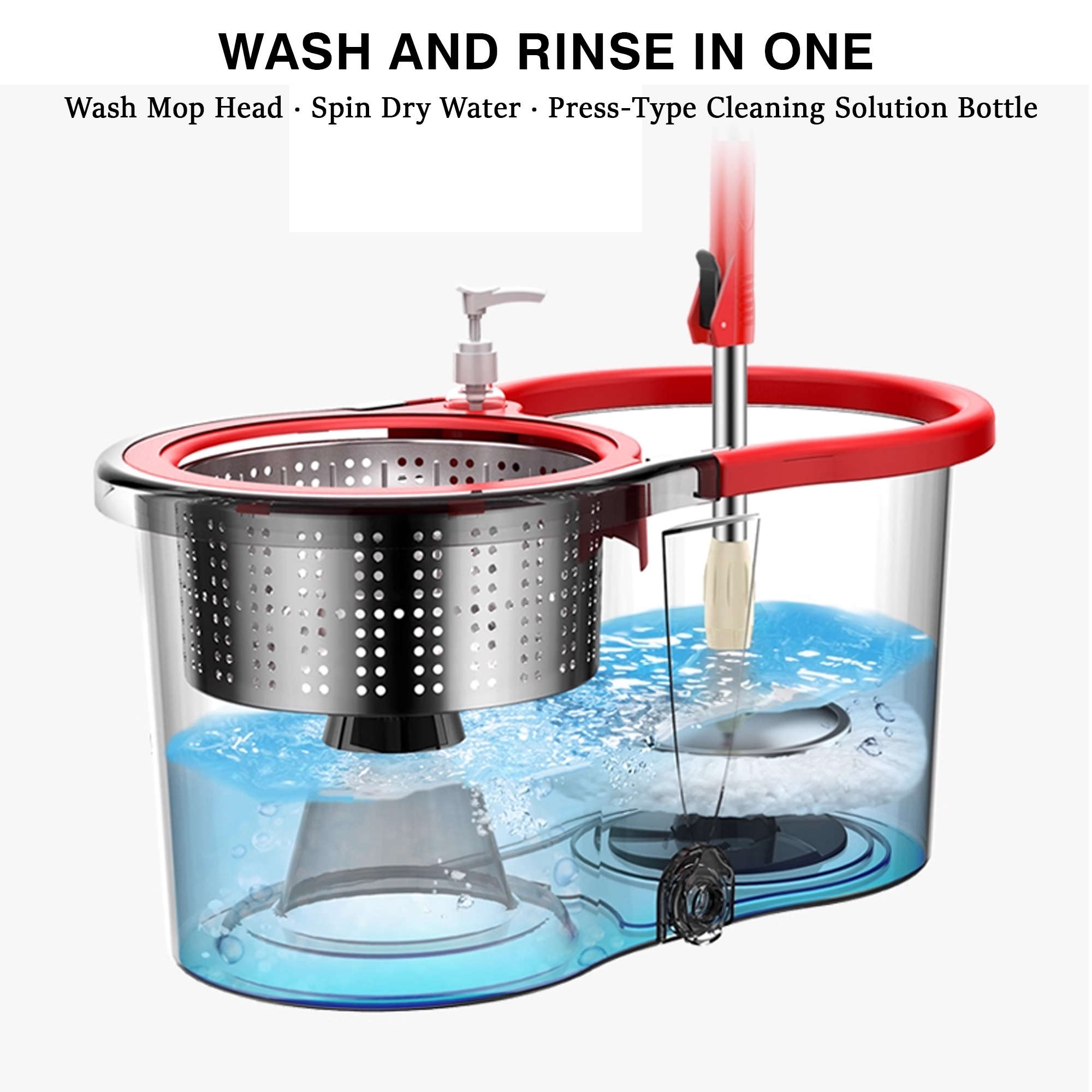 Configuration: Steel Basket + Steel Plate + Mop Rod + 2 Mop Heads