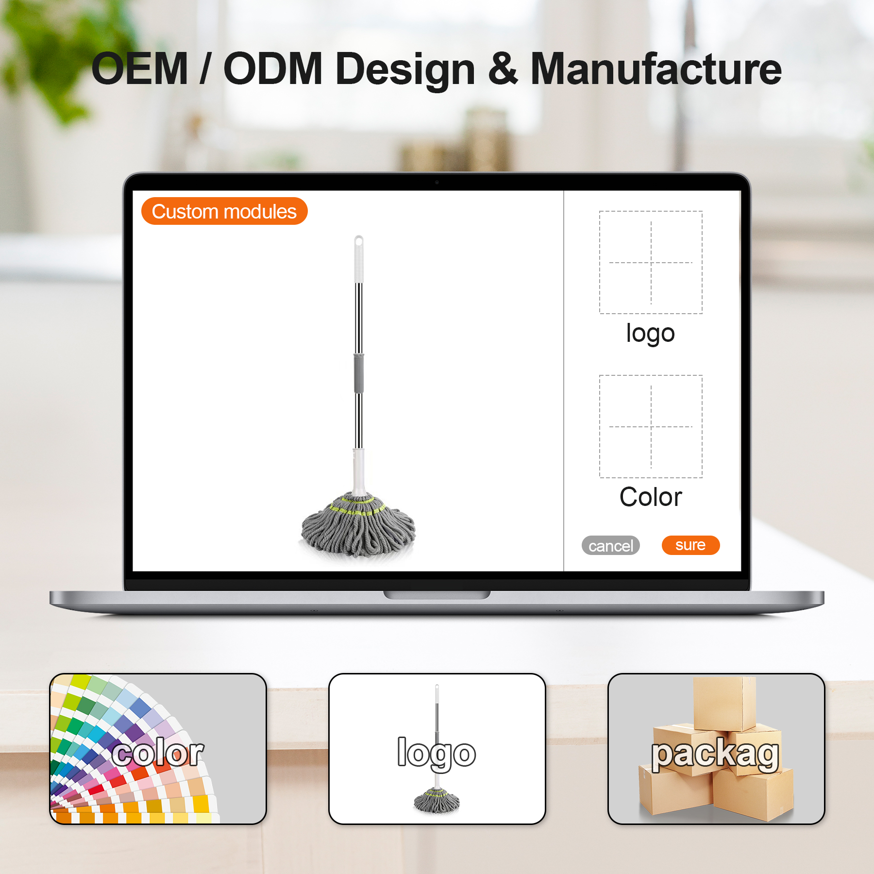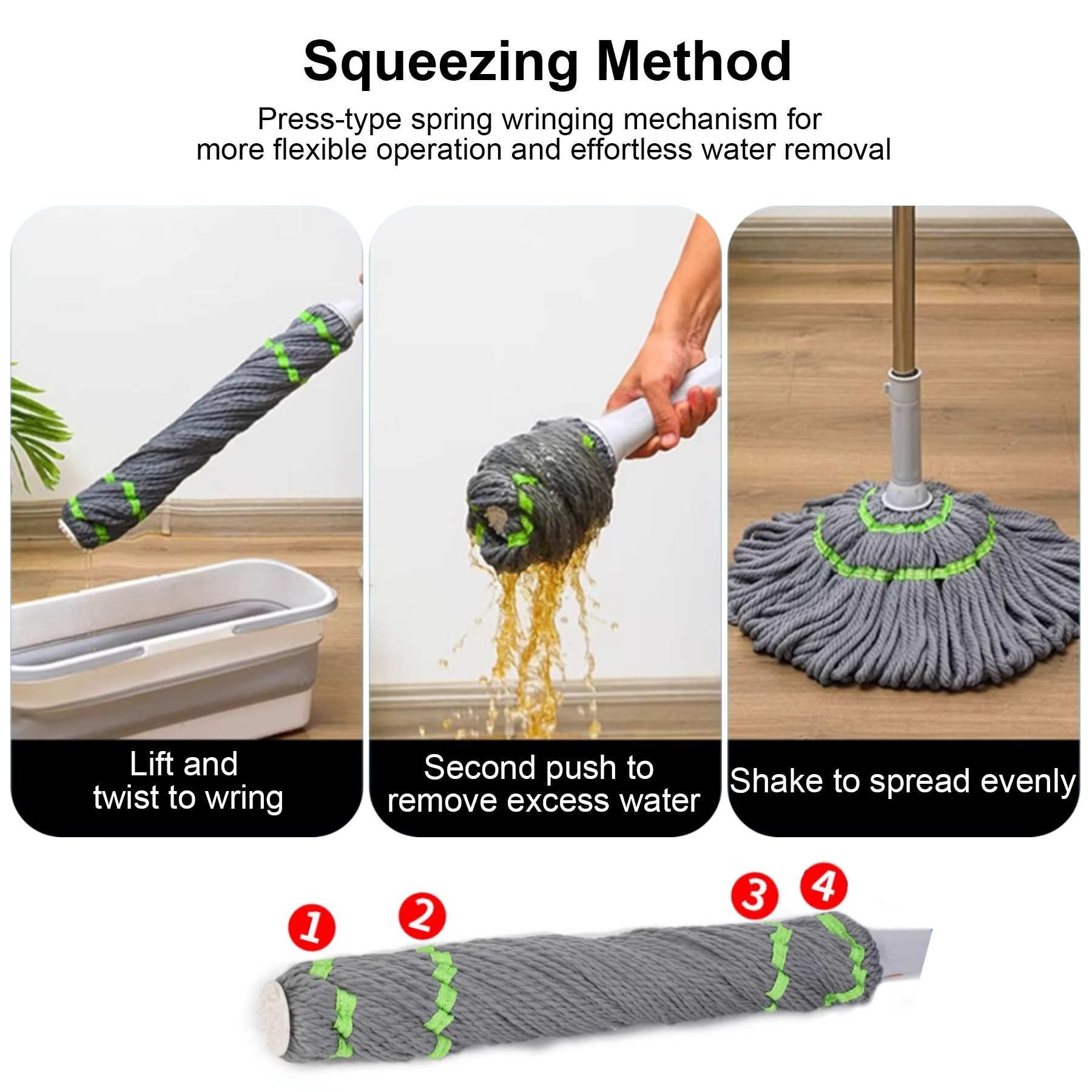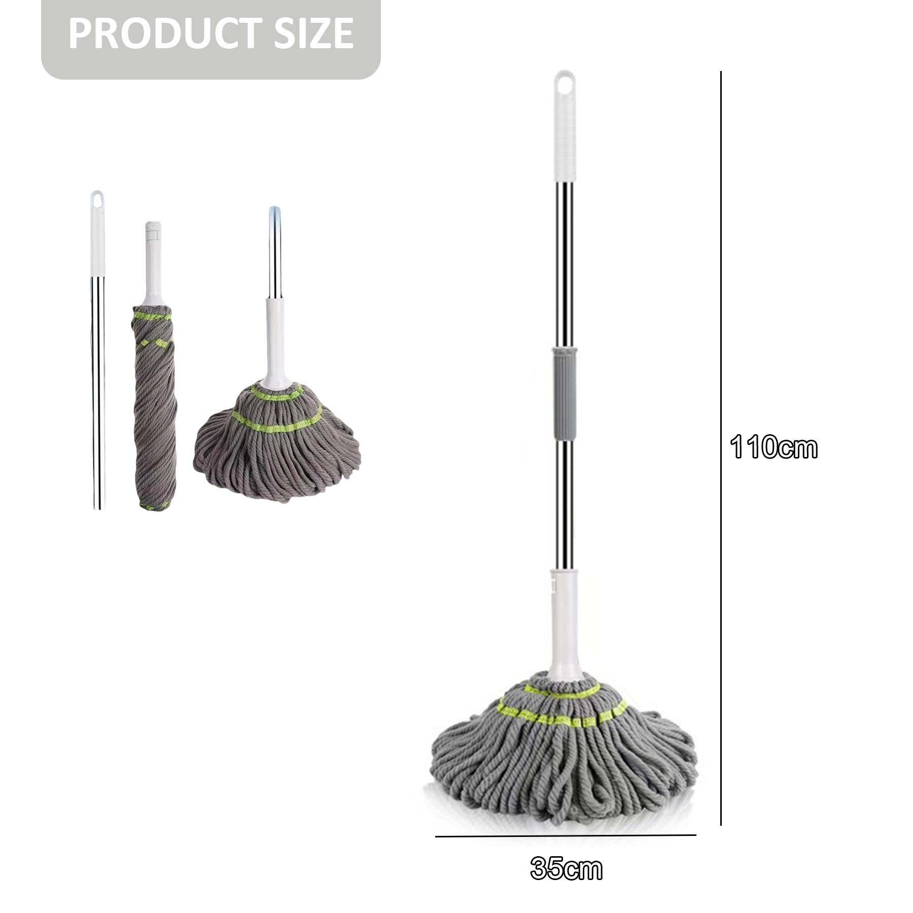 Shape: Round mop head with ergonomic handle